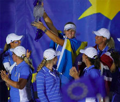 Europe`s eight point win was the biggest margin of victory in the history of the women`s golf tournament, breaking the old mark of seven points which was achieved twice in 2003 and 1990.