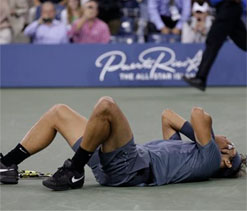 Spanish second seed Nadal defeated Serbian world number one Novak Djokovic 6-2, 3-6, 6-4, 6-1 to capture the men`s crown on Monday, a day after Williams outlasted second-ranked Victoria Azarenka of Belarus 7-5, 6-7 (6/8), 6-1.